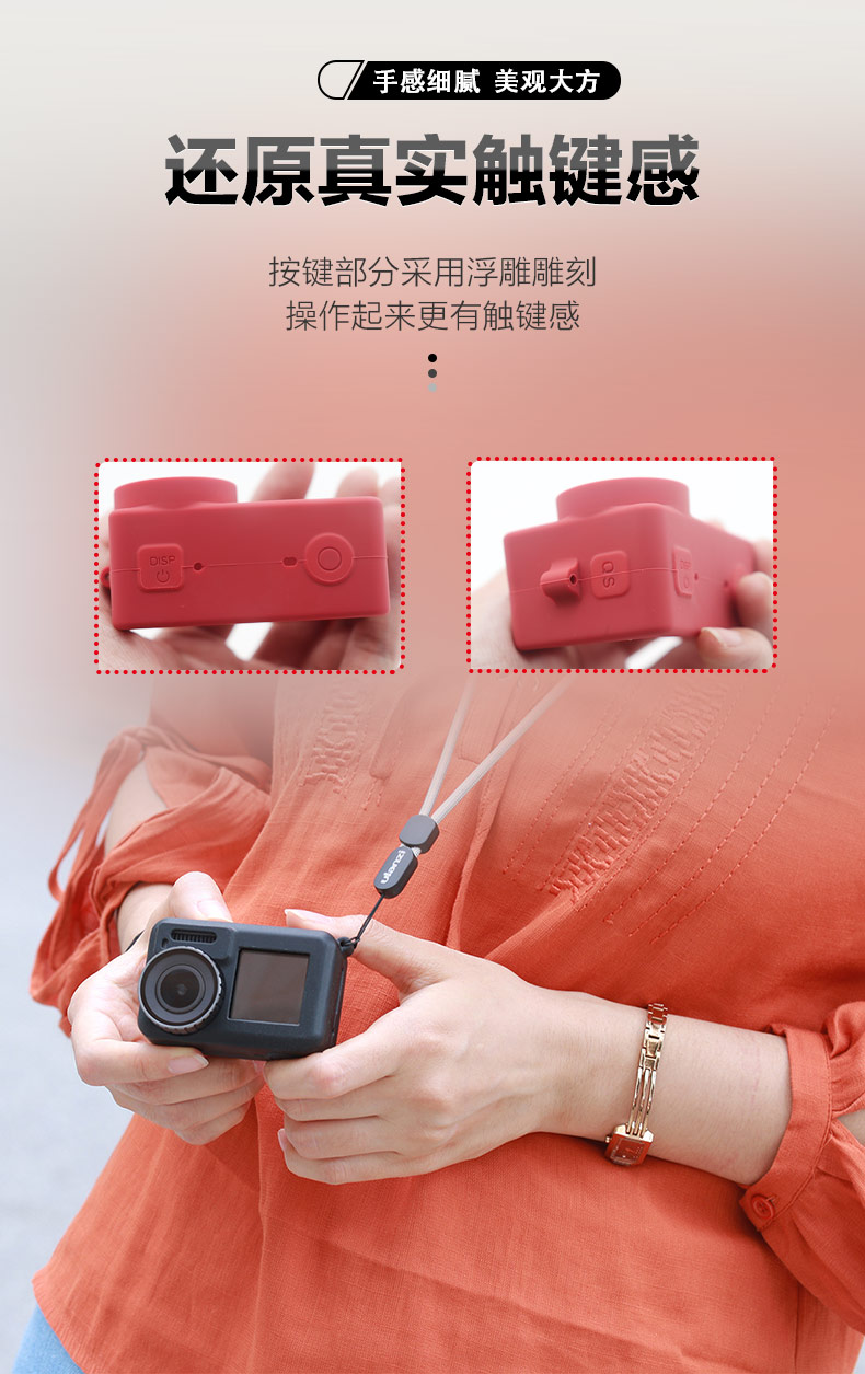 整個(gè)硅膠套全部是1:1,還原整個(gè)相機(jī)的外觀尺寸以及預(yù)留孔位,輕松裝機(jī)。