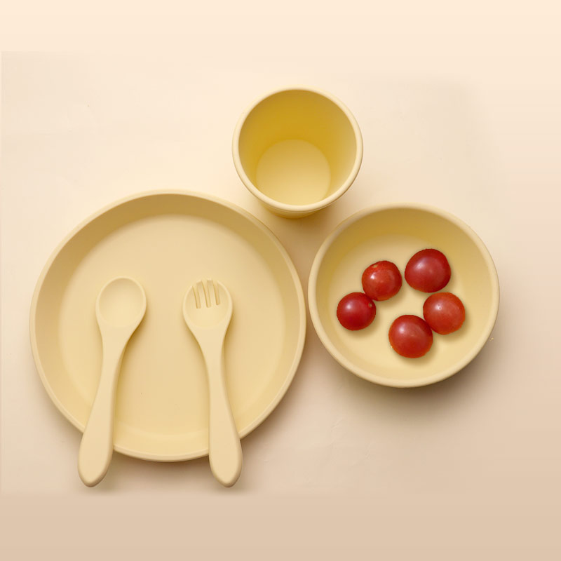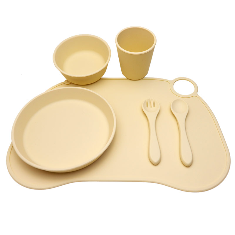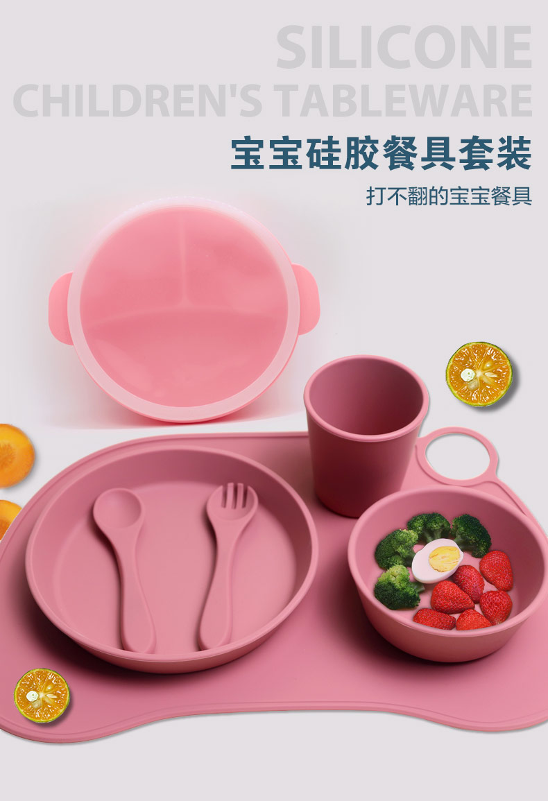 批發(fā)食品級硅膠兒童餐具寶寶喂食硅膠餐盤碗杯子餐墊 套裝