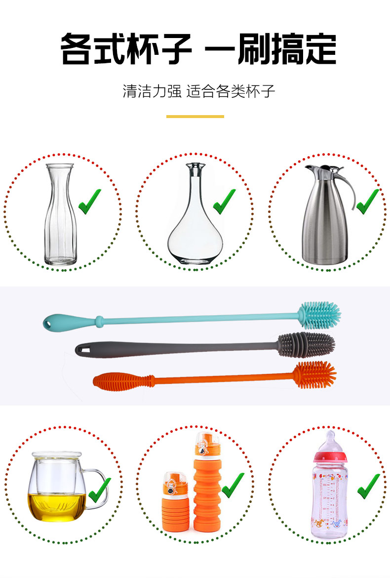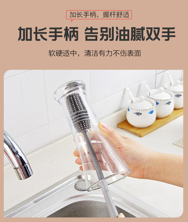 長(zhǎng)手柄硅膠刷水杯茶具專用清潔工具